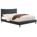 Meet the Renee Bed - Sleep all of your worries away with this furnishing that acts as the central hub to any home. A mattress might be soft, but this linen-look, textured fabric with vertical panel stitching on its headboard envelops your tranquil retreat in an abundance of plush comfort. Brought all together with beautiful solid rubberwood legs in a coffee finish, this bed will accentuate your personal style while adding a pop of fun to your bedroom. Sleek enough for a master bedroom, yet also casual enough for a child's, teenagers, or guest bedroom.