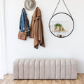 Meet The Winnie Bench - A versatile and stylish addition to your living space. With its channeled upholstery, this bench not only offers ultimate texture and design but also adds a touch of modern flair to any room. Whether you need a comfy seat or a spot to rest your feet after a long day, the Winnie Bench has got you covered.